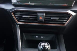 La consola central entre los asientos del Formentor cuenta con la palanca del cambio manual, el botón de arranque y el freno de mano eléctrico. No entiendo bien la razón de integrar el selector de modos de conducción en el sistema multimedia habiendo tanto sitio en esta zona. Es algo que en los VZ no es un problema al integrarse en el volante pero que en los acabados sencillos es algo molesto.