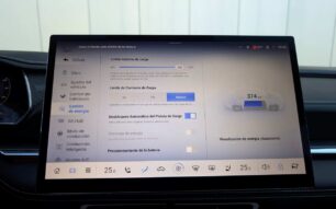 Además, la versión estándar admite cargas de hasta 165 kW en corriente continua, completando del 10 al 80% en poco más de veinte minutos. En corriente alterna, el cargador de a bordo permite 11 kW, con una recarga completa en unas siete horas. La gestión térmica de la batería es eficaz, y el sistema de iluminación de la parrilla actúa como indicador visual del proceso, añadiendo un toque de diseño funcional.