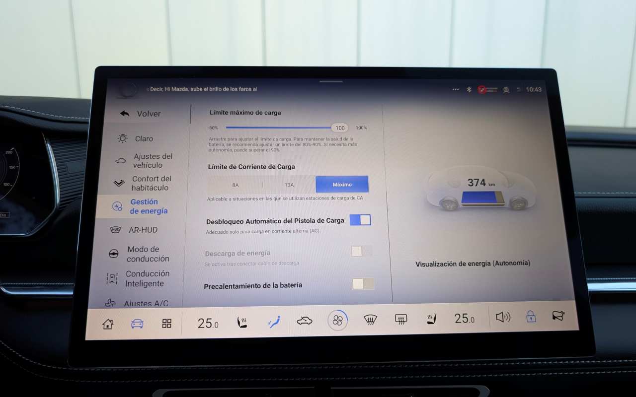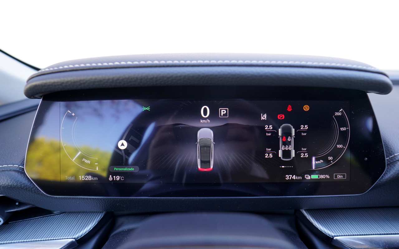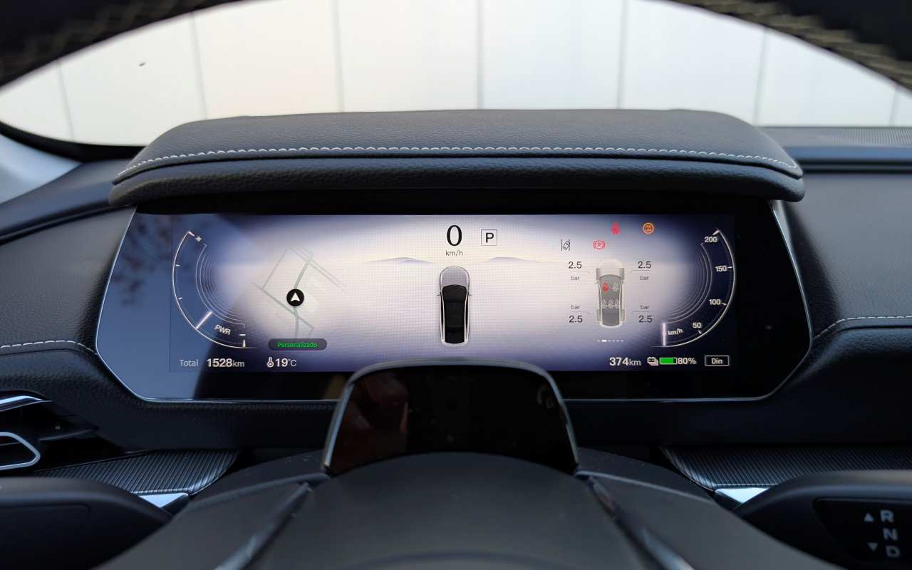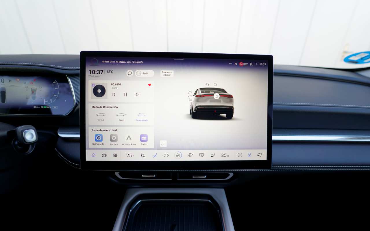 El cuadro de instrumentos digital de 10,2 pulgadas ofrece una información clara y adaptable, y el Head-Up Display con realidad aumentada proyecta en el parabrisas datos precisos sobre navegación, velocidad o asistencia al conductor. En el centro, la gran pantalla de 14,6 pulgadas domina el salpicadero y concentra la mayoría de los controles. Este enfoque puede no gustar a todos: algunos preferirán botones físicos para el climatizador o los modos de conducción, pero el sistema responde con fluidez y una lógica de menús bien pensada.