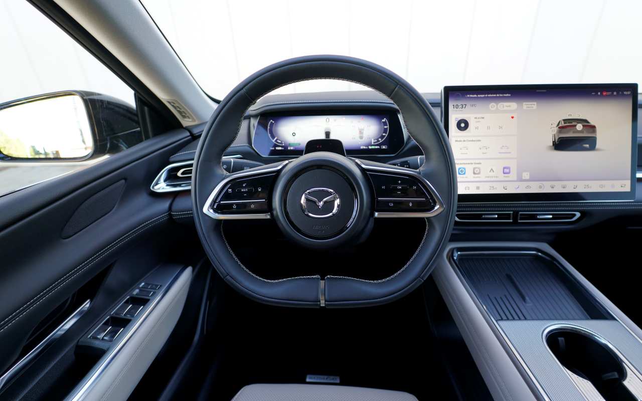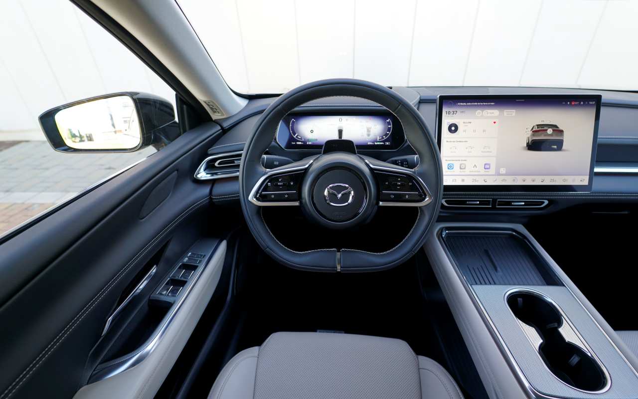 El tacto del freno merece mención aparte. Mazda ha conseguido integrar la frenada regenerativa de manera progresiva, evitando ese efecto esponjoso típico de muchos eléctricos. El conductor puede ajustar la intensidad de la regeneración en cuatro niveles, desde una retención ligera hasta un modo más intenso que permite una conducción casi con un solo pedal.
