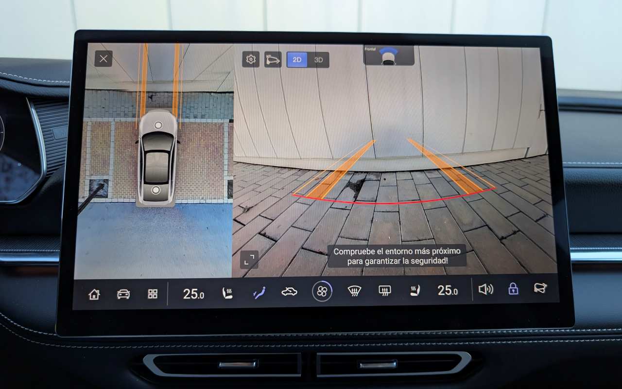 En ciudad, a pesar de sus dimensiones —casi cinco metros de longitud—, el coche se mueve con agilidad. La dirección asistida es ligera a baja velocidad y las cámaras de visión 360 grados ofrecen una imagen nítida y realista, lo que facilita el aparcamiento.