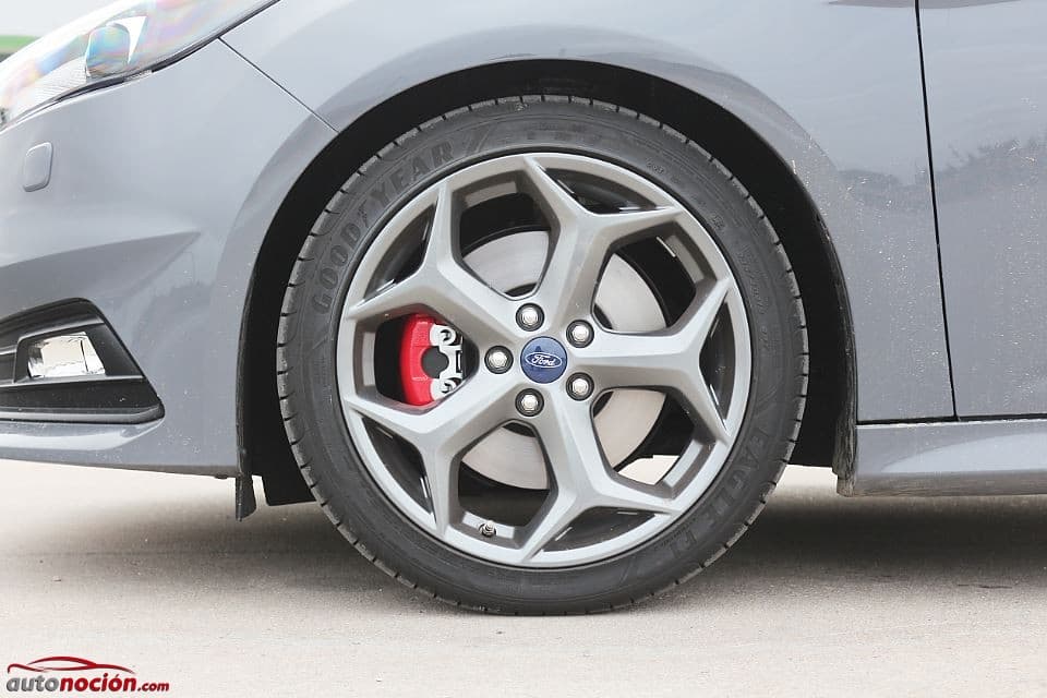 Los abultados pasos de rueda acogían unas espectaculares llantas de aleación de 18” en color grafito que equipaban unos neumáticos Goodyear Eagle F1 en dimensiones 235/40 R18 AS2 95Y. Estas llantas encierran un sistema de frenos específico de los modelos ST que además puede rematarse con unas pinzas de freno en color rojo.