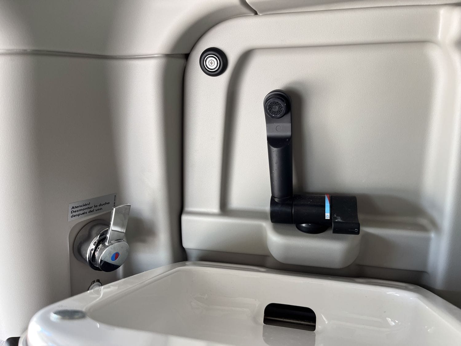 El depósito de aguas limpias tiene una capacidad de 42 litros que no te servirán para darte largas duchas durante varios días pero cunden más de lo que podría parecer si sabes dosificarla bien. Este agua también llega al fregadero así que deberás tener presente siempre que cantidad queda para evitar dejar a medias «el fregao».