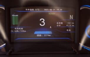 Una vez se pasa al interior te encontrarás con un automóvil de diseño sencillo con materiales siempre duros y algunos ajustes mejorables. También verás una instrumentación y sistema multimedia con leyendas en chino pero una vez más hay que añadir que es un pre-serie con especificación única que no podrás comprar.