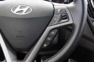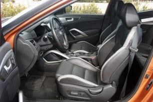 El conductor puede seleccionar desde un botón en el volante tres modos de funcionamiento de la dirección: Comfort, Normal y Sport. El primero tiene un tacto blando que ayuda en las maniobras de aparcamiento pero superando los 40 km/h da la sensación de ir demasiado ligera. La normal es interesante para un conducción tranquila mientras que la Sport, con una dureza notable, es la ideal para esos días en los que te apetece exprimir las posibilidades del Veloster.