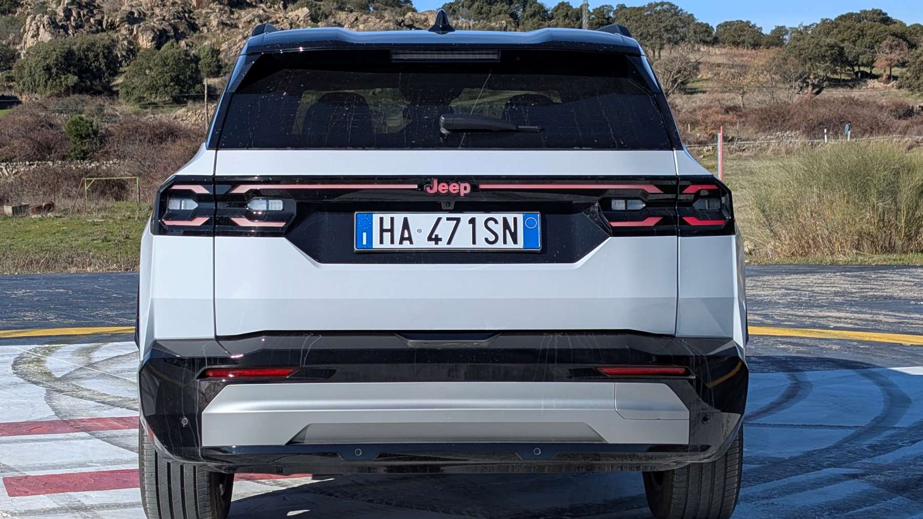 La zaga es probablemente la parte más discutible del diseño. El portón es limpio, bien rematado, con pilotos horizontales unidos por una firma lumínica continua que seguro que queda bien de noche, pero que inevitablemente recuerda a otros modelos del mercado. El parecido con ciertos modelos modernos no es casual, y aunque no es algo necesariamente negativo, refuerza la sensación de que Jeep ha optado por ir a lo seguro.