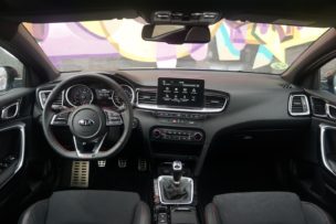Para no elevar los costes el diseño del habitáculo es idéntico al del resto de la familia Ceed. Al ofrecerse solo con los niveles de acabado más completos la sensación de calidad aumenta y transmite solidez. Los plásticos acolchados son muy usados para las zonas superiores mientras que la piel y/o alcántara están presentes también en varios elementos. Detalles en negro lacado y aluminio son de serie igualmente, consiguiendo un efecto muy positivo.