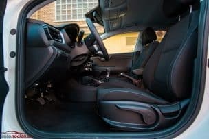 En cuanto al equipamiento, hablaré de él específicamente en el apartado reservado para ello, aunque ya os adelanto que no me ha gustado nada el climatizador monocromo, en los días soleados apenas se ve la temperatura que hemos seleccionado. Por otra parte, el nuevo Rio está disponible con una gama de tapicerías de color negro o gris, bien textiles o de cuero sintético. A lo largo del interior hay remates de acabado metálico y negro brillante que confieren un aspecto más moderno.