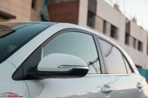 La vista lateral está protagonizada por una amplia superficie acristalada -con los cristales posteriores oscurecidos- que garantiza una buena visibilidad, aunque queda un poco alta para mi gusto. La superficie de las puertas es limpia, sin embellecedores, y estas cuentan con un tamaño que, sin ser excesivo, resulta suficiente. En este caso los espejos retrovisores integran los intermitentes y cuentan con una base en color negro a contraste con el marco de las ventanillas.