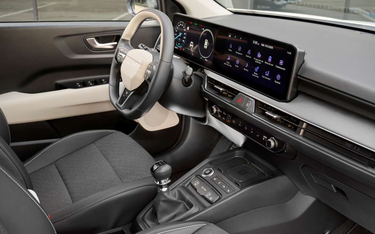 Si por fuera se nota la evolución, por dentro es donde realmente cambia el Stonic. Al abrir la puerta, lo primero que llama la atención es el nuevo conjunto de dos pantallas panorámicas de 12,3 pulgadas (disponibles en los acabados más altos), una para la instrumentación y otra para el sistema multimedia. Es un despliegue tecnológico poco habitual en el segmento y que coloca al Stonic al nivel de modelos más grandes.