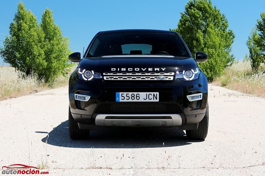 En el frontal nos topamos con unas líneas muy horizontales que hacen que el ya de por si ancho diseño parezca más ancho de lo que es. En posición privilegiada –en la curvatura más avanzada del capó- nos encontramos con la serigrafía tan característica de la marca –me refiero a las letras del modelo o la familia-. En posición frontal, nuestra unidad de pruebas contaba con la presencia de una calandra en color gris en dos secciones horizontales con malla hexagonal que le daba un aspecto de profundidad a la parte delantera. En la misma línea y sin separación alguna nos encontramos unos novedosos faros que cuentan con un diseño realmente característico y una firma lumínica conocida ya por todos –seguro que te la has encontrado alguna vez en el retrovisor y has sabido que era un Land Rover antes de que pasara por tu lado- Esta firma lumínica en LED y la tecnología de xenón asociada serán reemplazadas por la marca –por un sistema FULL LED- en un próximo lavado de cara que se centrará en lo tecnológico y lo mecánico más que en lo estético.