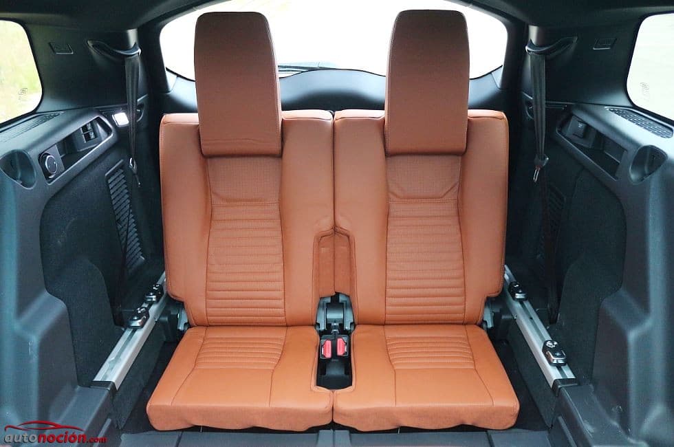 El problema como siempre viene en la tercera fila compuesta por dos asientos abatibles. Se trata de dos asientos completos con salidas de ventilación regulables, reposacabezas y cinturones de 3 puntos que pueden ocultarse bajo el suelo del maletero y ampliar de este modo la zona de carga. Pese al gran elenco de comodidades que encontramos en la tercera fila, la misma apenas cuenta con espacio para los pies al encontrarse prácticamente montadas sobre el eje trasero. Es por esto que recomiendo estas plazas sólo para niños o para adultos solo en viajes esporádicos.