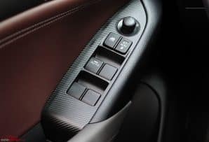 El salpicadero fabricado en plásticos duros con diferentes diseños cuenta con una apariencia duradera y está rematado por superficies acolchadas tapizadas en piel sintética con pespuntes claros. Los ajustes son impecables, aunque siempre hay algún que otro «pero» y nos topamos con algunos fallos en las partes bajas.