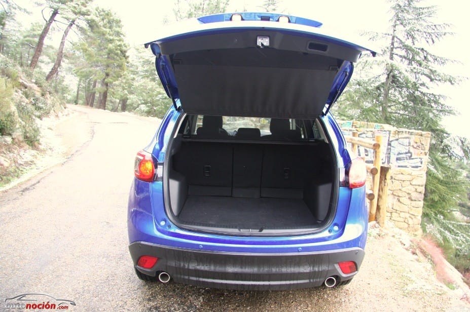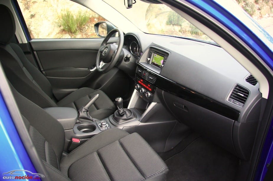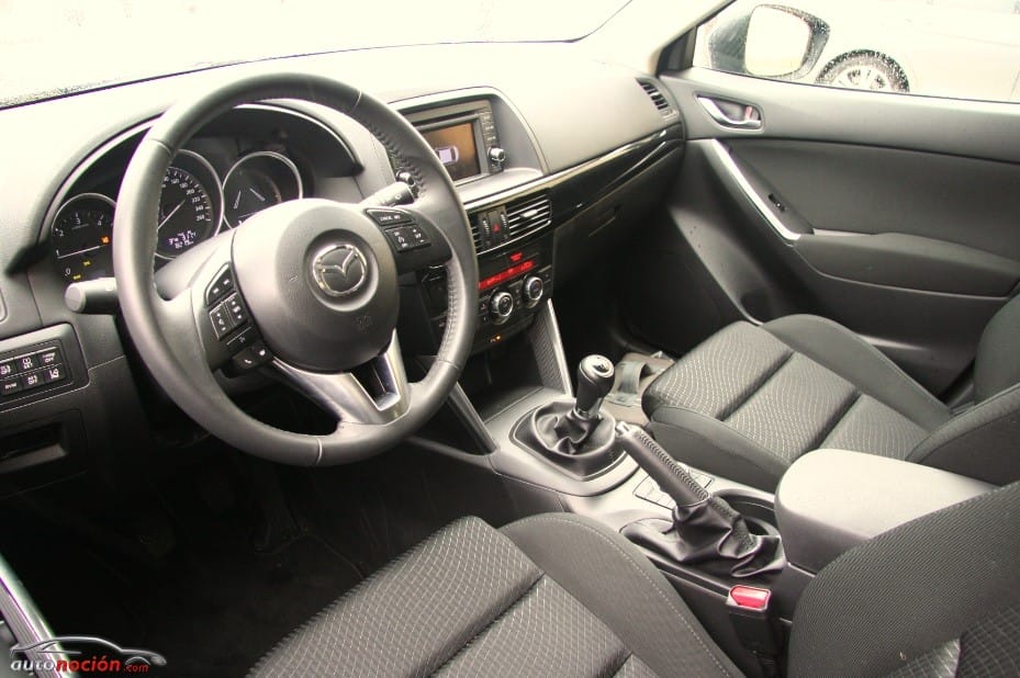 En cuanto al combustible, Mazda da unos consumos oficiales de 4,1 / 4,6 / 5,4 en extraurbano, combinado y urbano respectivamente. Sin embargo, nuestra experiencia personal nos dice que con una conducción normal, de 120 km/h constante en autopista y 100 km/h en carreteras secundarias con desniveles (como suele ser habitual, por otra parte) el consumo es ligeramente superior. En concreto, nuestra unidad marcaba al término de la prueba un consumo de 5,7 litros que, siendo en mi opinión un buen registro, es superior al oficial en combinado. El depósito tiene una capacidad de 56 litros. En el apartado de emisiones, para los más concienciados con el medioambiente, indicar que las emisiones de este motor son de unos 119 g/km. A continuación os mostramos los precios facilitados por Mazda para los distintos CX-5 que podemos encontrar en el concesionario, aunque el dato más relevante que os podemos ofrecer es el precio final de la unidad probada por Autonocion, que incluyendo todos los extras, y teniendo en cuenta algún descuento aplicable, se quedaría en 29.990€.