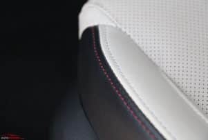 Cuando accedemos al habitáculo nos damos cuenta de que se trata de un coche en el que todo está al alcance de la mano del conductor. Sus cómodos asientos -tapizados en una recomendable piel blanca con detalles en rojo (en otros acabados supone un desembolso de 1600 euros)- son acogen y sujetan con la mayor eficacia.