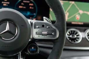 En materia de seguridad, podemos encontrar sin sobrecoste los airbags convencionales, de rodillas (para el conductor), de tórax y cadera; asistente de frenado activo, asistente para señales de tráfico, sistema PRE-SAFE, AMG ESP con tres niveles, capó activo para protección de peatones, control de ángulo muerto, detector activo de cambio de carril, faros MULTIBEAM LED…