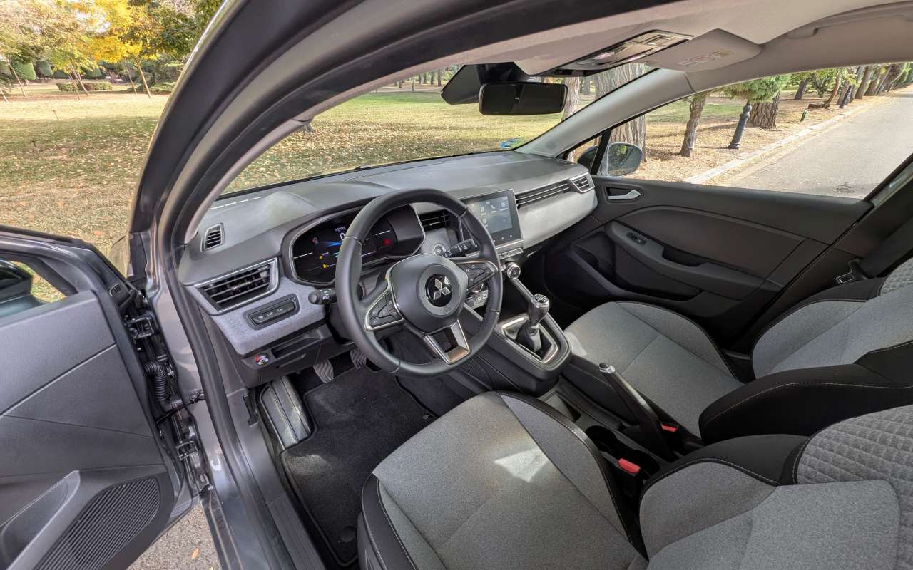 Si hay un apartado donde el Clio dio un salto enorme en su quinta generación es el interior, y el Mitsubishi Colt hereda exactamente esas virtudes. Nada más abrir la puerta, la sensación es la de estar ante un coche de un segmento superior.