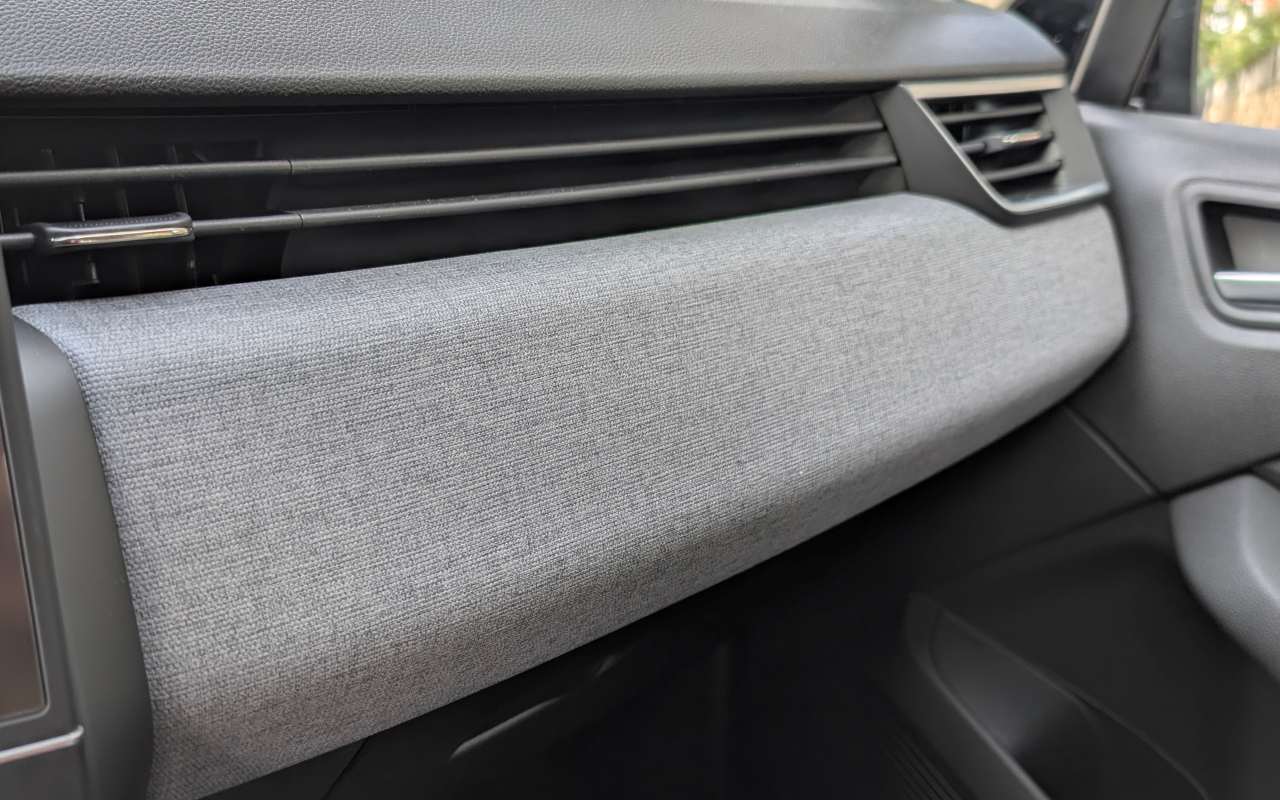 La presentación interior es excelente, con una distribución de mandos lógica, buen tacto general y una sensación de solidez muy convincente. Atrás quedan los problemas de ajustes y materiales mejorables del Clio IV. Aquí encontramos plásticos acolchados en las zonas superiores, tapizados cuidados y apliques decorativos bien integrados.