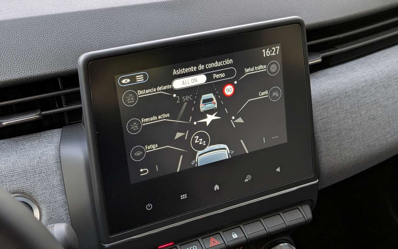 Curiosamente tenemos el mismo botón de desactivación y configuración de sistemas de asistencia que en Renault y esto es un punto muy a su favor. Este botón nos permite configurar qué pitidos y alertas queremos escuchar y cuales no, guardarlas en «un perfil» y hacer uso de ellas o no a nuestro gusto, con sólo pulsar ese botón.