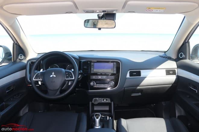 Una vez nos subimos al Outlander PHEV nos encontramos con un montaje y unas calidades generales muy Premium. Los asientos son anchos, muy cómodos y en nuestra unidad estaban tapizados en cuero.