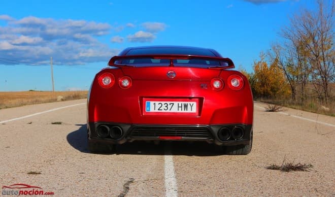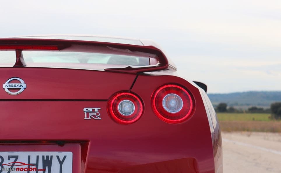 La parte trasera es simplemente magistral. Ya en la parte superior el GT-R monta un imponente alerón con tercera luz de freno LED que genera mucha carga aerodinámica en el eje posterior. El alerón trasero se monta sobre la ligera tapa del maletero que aunque ofrece un acceso muy elevado, lo cierto es que cubre un hueco de 315 litros, una cifra que no está nada mal, teniendo en cuenta el tipo de vehículo.