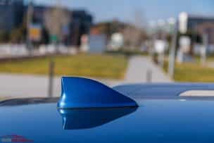 Por último y, visto desde arriba, nos encontramos con los ya mencionados raíles de techo en color plata, un techo panorámico de grandes dimensiones practicable en su primera mitad y una antena que por fin es de tipo aleta de tiburón. En total, hay disponibles 10 colores exteriores para la carrocería entre los que podemos encontrar tonos clásicos o alegres y diversos acabados: sólido, perlado o metalizado. En este caso tenemos un llamativo Azul Perlado metalizado -600€-.
