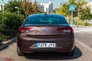 Remata el conjunto una zaga de líneas horizontales que parece asentar el modelo sobre el asfalto, con un portón de generosas dimensiones en el que incluso podemos apreciar un sutil spoiler. A primera vista, la luneta posterior puede parecer algo pequeña a causa de la inclinación de la misma, pero lo cierto es que desde el interior la visibilidad es bastante buena. En ella encontramos también la tercera luz de freno. En posición central de la vista trasera vemos el logo de Opel que, a su vez, sirve como botón de apertura del maletero, escoltado a ambos lados por unos tecnológicos faros LED.