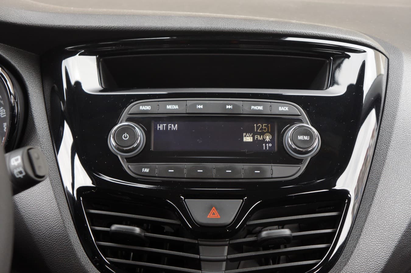 El sistema de sonido de la unidad testada es de serie. Incluye lector de CD MP3, puerto USB y bluetooth en un formato pequeño de 1 DIN. En opción desde enero es posible añadir el sistema Opel IntelliLink con pantalla táctil de siete pulgadas, acceso a aplicaciones, Opel OnStar y muchas funciones por sólo 490 € adicionales. Merece la pena y además viste mucho el interior del Karl.