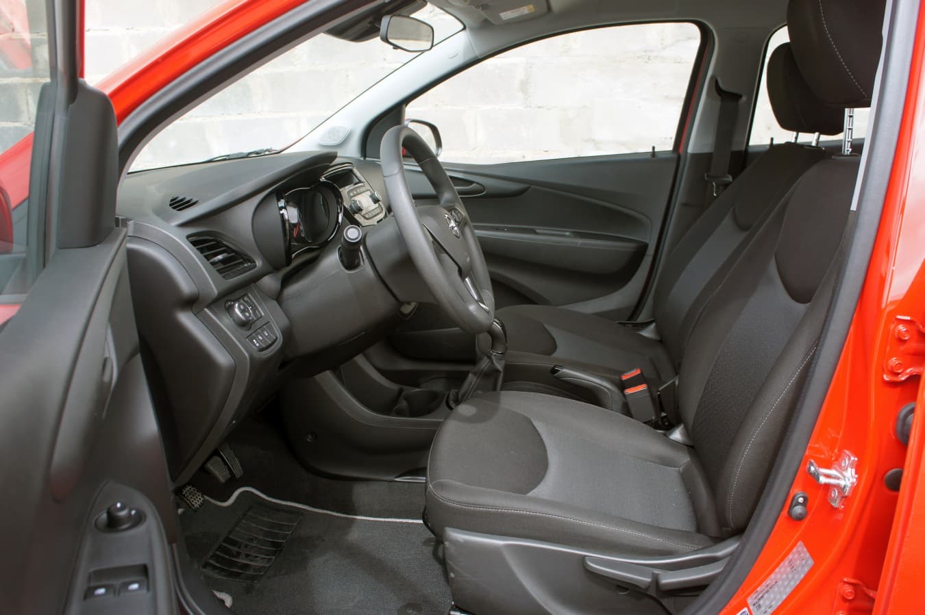 Nada más pasar al interior lo primero que sorprende es el salpicadero, con una presentación muy agradable. Cierto que los materiales son sencillos pero no hay nada de chapa a la vista y la distribución de todos los mandos es “de coche de verdad”, no como en los Toyota Aygo, SEAT Mii y sus derivados que utilizan plásticos menos vistosos.