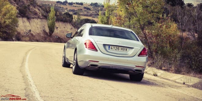 La característica silueta de la Clase S con sus elegantes y esbeltas proporciones refuerzan el efecto atlético y dinámico de tipo clásico de la carrocería. Los voluminosos pasos de rueda de nuestra unidad albergaban unas llantas sin recargo de 19 pulgadas en diseño de 5 brazos dobles que montaba unos neumáticos Continental ContiSportContact 245/45 R19 102Y en la parte delantera y unas en dimensiones 275/40 ZR19 101Y en la parte trasera.