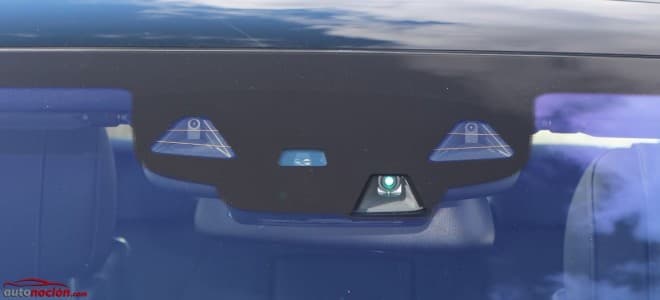 En la parte superior del display ubicado tras el volante opcional de 831,27 euros, cuenta con una zona en la que se representa el sistema de aparcamiento con sensores de la parte delantera. Los LED para la parte trasera se encuentran instalados en el techo, justo encima de las plazas traseras.
