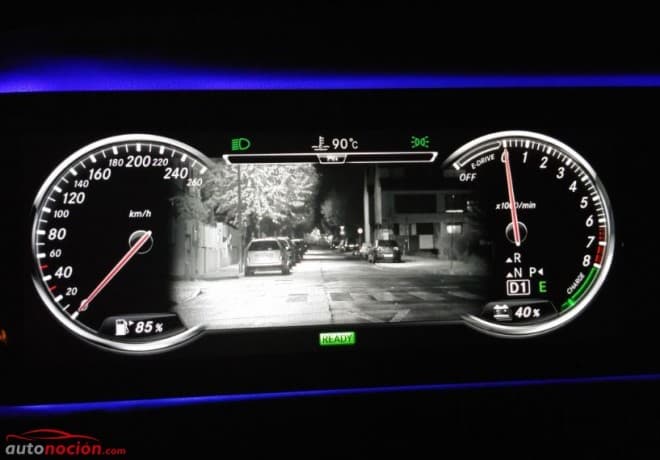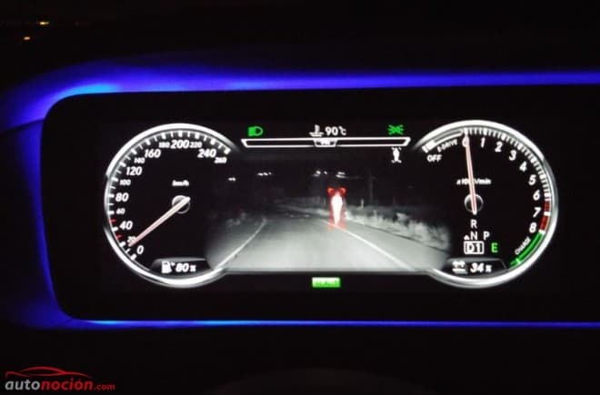 El asistente para visión nocturna reproduce en el campo visual del conductor una imagen de lo que, hasta entonces, permanecía a oscuras. La imagen de vídeo en la pantalla TFT ayuda durante la noche a detectar objetos “calientes”, como personas o animales, así como obstáculos “fríos” como piedras u obstáculos en la calzada.