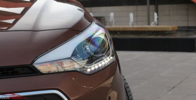 En el frontal del hyundai i20 objeto de la prueba presentaba un diseño realmente horizontal. En la parte superior, el modelo contaba con el logo de la marca en posición horizontal montado sobre una entrada de aire con la misma disposición que se juntaba con los faros delanteros.