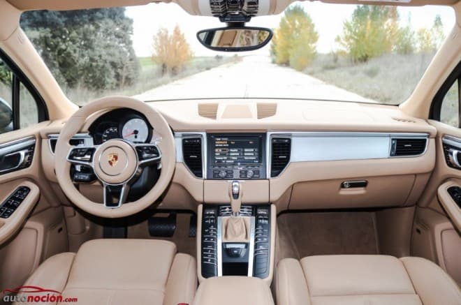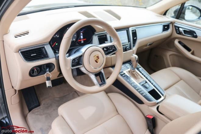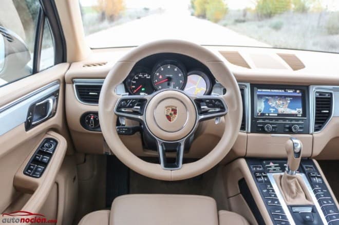 Una vez que nos ponemos al volante del Macan nos damos cuenta de que pese a ser un SUV, la posición del asiento es bastante deportiva, de hecho, no parece que estamos sentados en un vehículo tan sobreelevado. Además de la posición del asiento, la columna de dirección también está muy inclinada y la consola central está bastante elevada por lo que la percepción del puesto de conducción se asemeja más a la de un Golf que en un vehículo de su envergadura.
