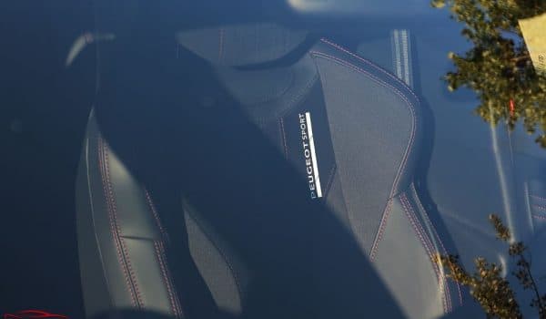 Entre los asientos encontraremos un apoyabrazos con compartimento portaobjetos y tapa deslizante. Los asientos delanteros son realmente deportivos, ofrecen una excelente sujeción lateral, son muy confortables y cuentan con el logo Peugeot Sport en acabado reflectante.