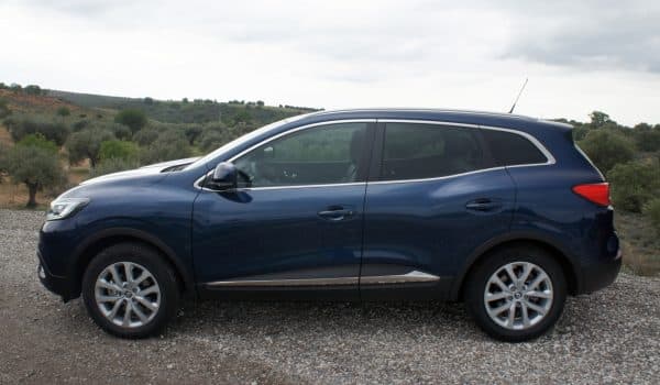 Visto de perfil tiene un cierto aire al Mazda CX-7 por las formas de las ventanillas y la moldura cromada que recorre todo el contorno… pero aquí terminan las semejanzas. El Kadjar juega con los pasos de rueda para ganar musculatura y conseguir ese toque off-road que tanto gusta a los usuarios de SUVs.