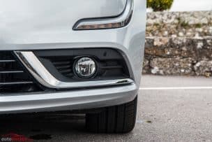 El frontal es quizá uno de los puntos más característicos de esta berlina familiar, con una parrilla de generosas dimensiones en la que el contorno y las lamas cromadas horizontales aportan un gran toque de elegancia. Lo mismo ocurre con la banda superior en negro brillante que alberga en su punto central el enorme logo de la marca y une las ópticas delanteras, las cuales cuentan con tecnología Full LED de serie en este acabado en lo que la firma gala denomina LED Pure Vision. Ofrecen una luz bastante blanca y un haz generoso, lo que repercute en una vista menos cansada cuando circulamos de noche.
