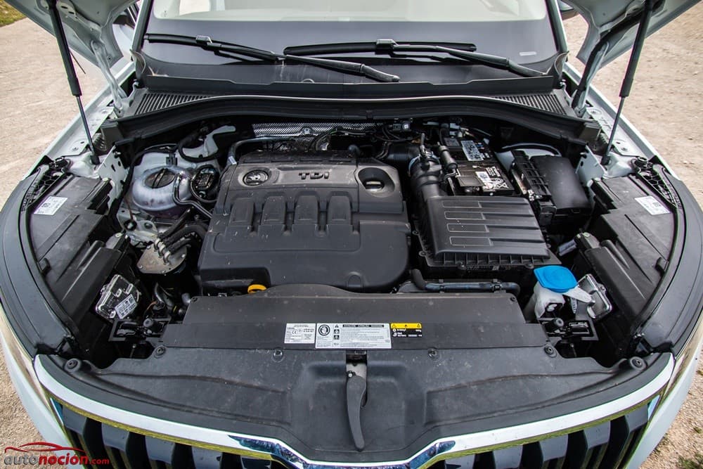 En mi caso, he optado por el bloque 2.0 TDI con 150 caballos, tracción total y transmisión DSG de siete velocidades, quizá la opción más recomendable para aquellos que usan el coche casi a diario y aprovechan para hacer escapadas con relativa frecuencia. Cuenta con un par máximo de 340 Nm entre las 1.750 y las 3.000 rpm, lo que le permite recuperar con fuerza desde bajas vueltas y en un amplio aceptable de revoluciones, pero sus casi dos toneladas de peso le pasan factura cuando queremos o necesitamos que el modelo se mueva con brío para adelantar o subir un puerto de montaña.