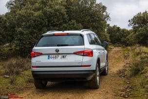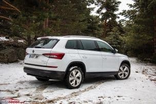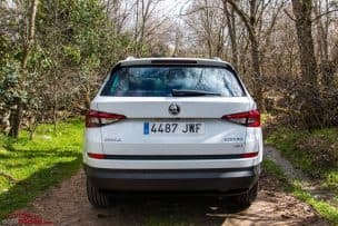 Es cierto que una ciudad como Madrid no es el mejor entorno para un vehículo de 4,7 metros de longitud, al margen de que puedas desenvolverte en la misma con total normalidad (y de hecho es lo que hará la mayoría de clientes del Kodiaq). En la urbe sus dimensiones son su mayor hándicap a la hora de callejear o aparcar. Sin embargo, desde Škoda han pensado en todo y han dotado al Kodiaq de algunas tecnologías que te harán la vida más fácil en espacios reducidos, como los sensores de aparcamiento delanteros y traseros, la cámara con guías dinámicas o el sistema de aparcamiento semi-autónomo. Lógicamente, no solo les sacarás provecho en la urbe, sino también a la hora de aventurarte campo a través (como comentaré un poco más adelante) cuando tengas que superar diversos obstáculos y el prominente morro del coche o la pronunciada zaga no te permitan ver todas las roturas del terreno.