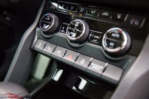 Por debajo sistema de infoentretenimiento están los controles del climatizador trizona de esta unidad, y lo cierto es que al verlos te darás cuenta de que la claridad y la precisión son comunes en todos los elementos del interior. De hecho, muchos de los elementos de la consola central me han recordado muy positivamente a los elementos del resto de modelos del Grupo Volkswagen.