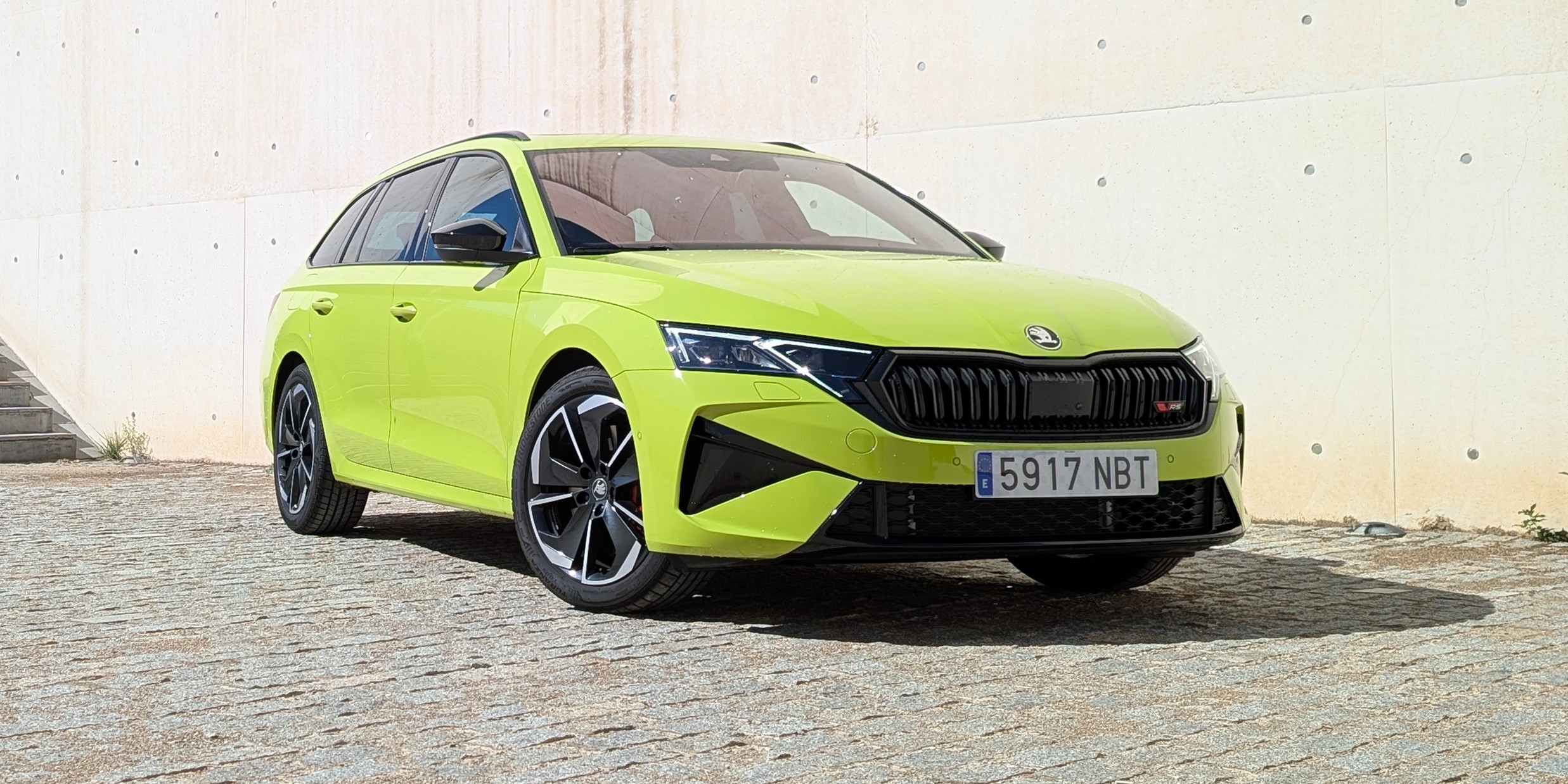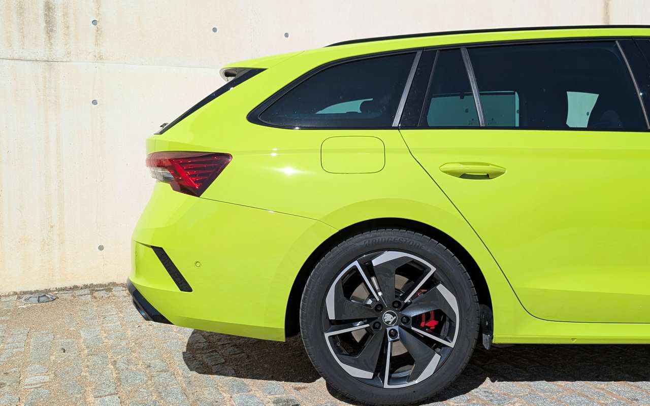Aunque no se trata de un modelo completamente nuevo, el Octavia Combi RS 2025 presenta una imagen más fresca y sofisticada. La marca ha aplicado su nuevo lenguaje de diseño con faros LED más afilados, una parrilla ligeramente más ancha y un paragolpes específico con grandes tomas de aire que dejan claro que estamos ante el RS.