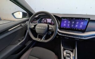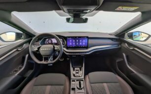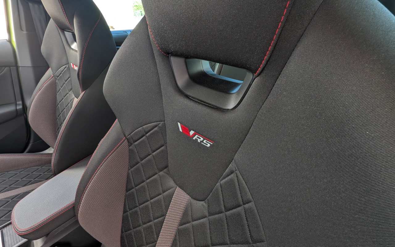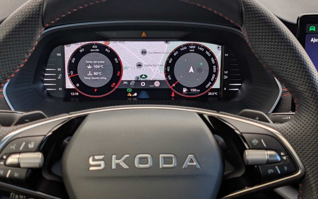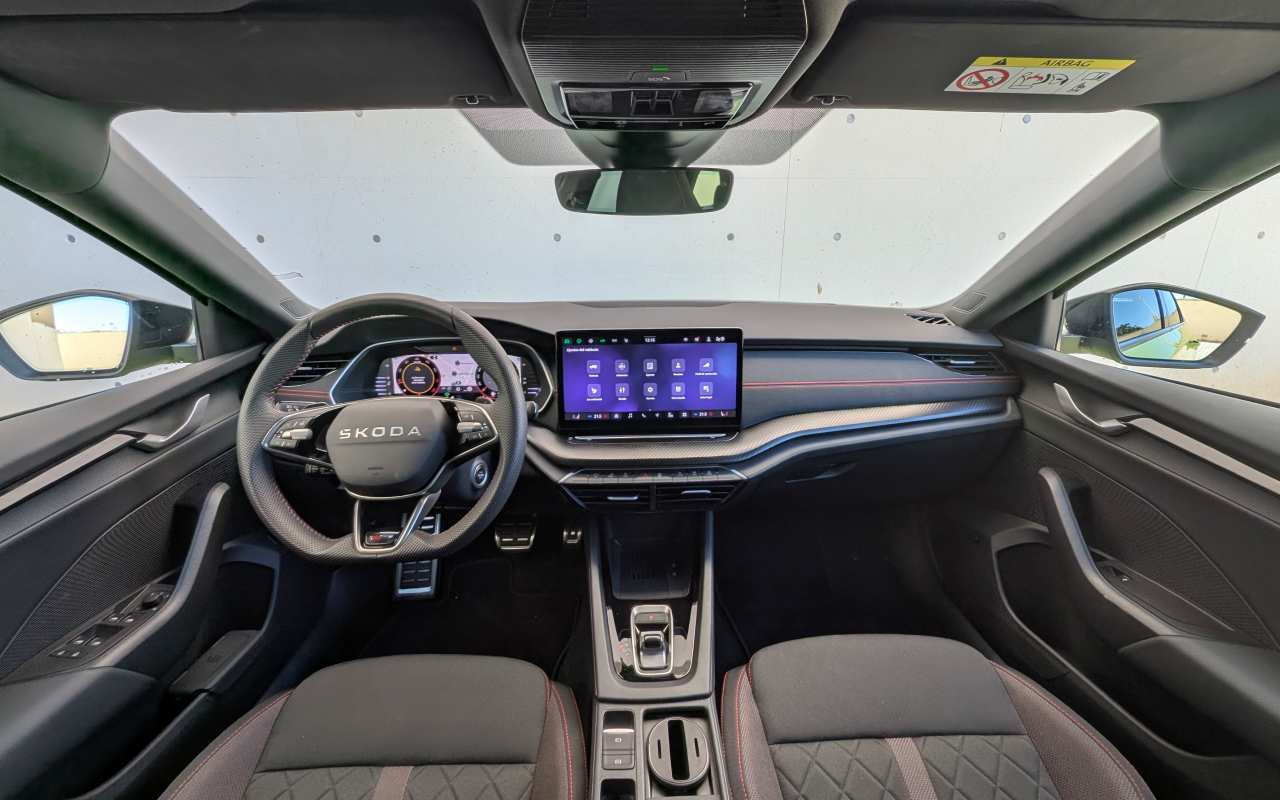Al abrir la puerta del RS, encontramos un habitáculo que mezcla sobriedad y deportividad con gran acierto. Škoda ha revisado materiales, tapizados y tecnología, apostando por un ambiente más refinado y digital.