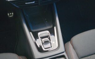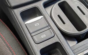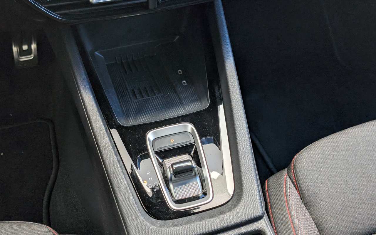 En el túnel central se ubican dos tomas USB-C de 45 W, un compartimento con carga inalámbrica refrigerada para el móvil (15 W), el nuevo selector de marchas, el freno de estacionamiento eléctrico, el sistema Auto Hold y dos portavasos cubiertos por una cortinilla. La consola finaliza con un reposabrazos regulable en altura y desplazable longitudinalmente, que oculta un hueco refrigerado con toma de 12 V.