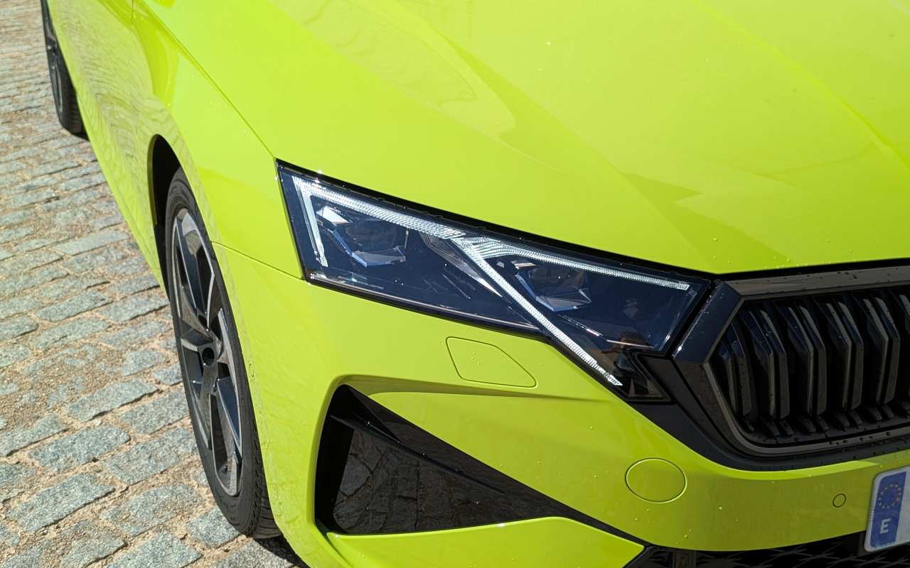 Atrás quedaron los polémicos faros divididos de generaciones anteriores, ahora el conjunto es más limpio y visualmente más ancho. Las ópticas pueden ser Matrix LED de segunda generación, con una iluminación excelente. En la parte trasera, los pilotos Full LED dibujan la característica forma de “C” y el nombre Škoda luce en grande sobre el portón, flanqueado por un discreto difusor y dos salidas de escape visibles.