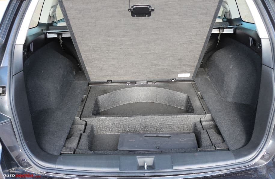 Me ha sorprendido que pese a haber espacio para una rueda de repuesto bajo el suelo del maletero, no tengamos ni una rueda de galleta de carácter provisional (algo para salir del apuro de un pinchazo…)