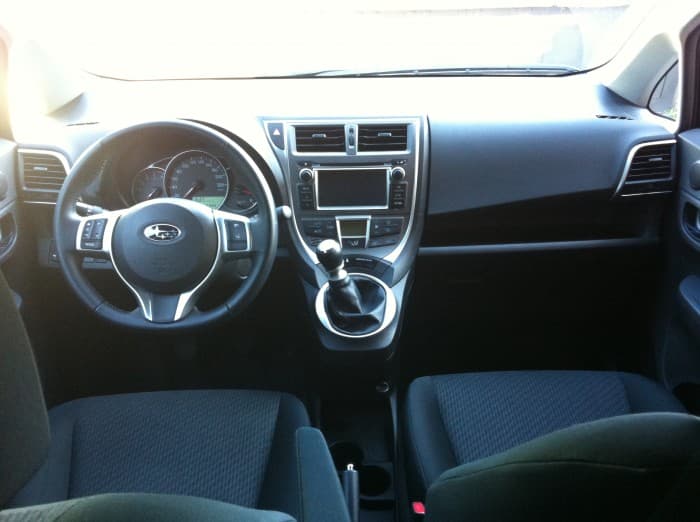 El punto fuerte del coche es, según mi opinión, el equipamiento. Subaru oferta las tres motorizaciones a las que hacíamos referencia anteriormente, y asocia a cada una de ellas, un acabado distinto: Advance, Limited y Limited Plus (de menor a mayor), siendo por tanto la terminación Advance la del gasolina, Limited para el diésel manual y Limited Plus para el diésel automático. Desde la más básica, incluye frenos de disco traseros, control de estabilidad, espejos eléctricos regulables, las llantas de 16 pulgadas a las que hacíamos referencia anteriormente, volante en piel, faros antiniebla, elevalunas eléctricos delanteros, aire acondicionado, radio CD con 6 altavoces y entradas AUX-in y USB para iPod, anclajes Isofix e indicador de cinturones. El Limited, que como digo es la versión que hemos probado nosotros, incorpora además elevalunas eléctricos traseros, lunas tintadas (quedan bastante aparentes), Bluetooth, pantalla táctil en el salpicadero, botón de arranque y reposabrazos trasero. Nos quedamos con las ganas de probar de momento el cambio de levas de la versión Limited Plus de la que hemos tenido muy buenas referencias. Asimismo, este acabado añade el techo panorámico y el sistema Easy Entry.