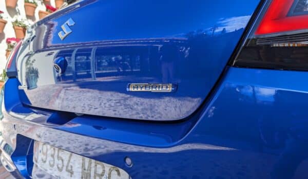 Para empezar nos encontramos con un parachoques frontal en el que destaca una gran parrilla en negro brillante que le da ese toque tan alegre a la cara del modelo. En esta parrilla se oculta el sistema de radar de proximidad de colisión frontal. Justo en la parte de encima nos encontramos el logo de Suzuki en una posición dominante. La parte intermedia luce el hueco para el portamatrículas. A ambos lados del parachoques nos encontramos con unos nuevos faros LED en los que debutan una nueva nueva firma lumínica que a su vez hace de luz diurna y también es de tecnología LED.