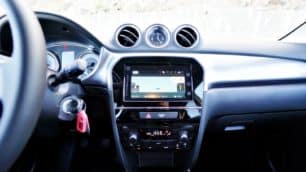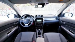 Toda la botonería queda al alcance del conductor y el acompañante, lo cual es de agradecer, aunque dado el carácter moderno del Vitara algunas soluciones tradicionales podrían haberse sustituido por controles más actuales. Es el caso de los pulsadores para cambiar la información entre los dos odómetros parciales y las pantallas del ordenador de a bordo, los cuales sobresalen en exceso del cuadro y su utilización es poco práctica. Cabe destacar la presencia del nuevo cuadro de intrumentos con pantalla a color de 4.2″