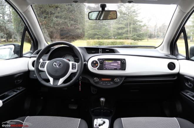 La consola del Yaris siempre ha sido muy simple pero en este caso se simplifica aún más pues ahora todas las opciones se manejan desde una pantalla táctil que nos permite configurar parámetros del vehículo como la sensibilidad del sensor de luces, el audio, el navegador o la ayuda visual al estacionamiento.