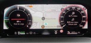 Desde el puesto de conducción tienes toda la información del sistema híbrido con datos de consumos, autonomía con gasolina y en modo eléctrico, y en el sistema multimedia también puedes ver una imagen del vehículo con los flujos de energía. Aquí desde luego Volkswagen ha estado acertada, no escatimando en información para el usuarios que además es sencilla de entender.